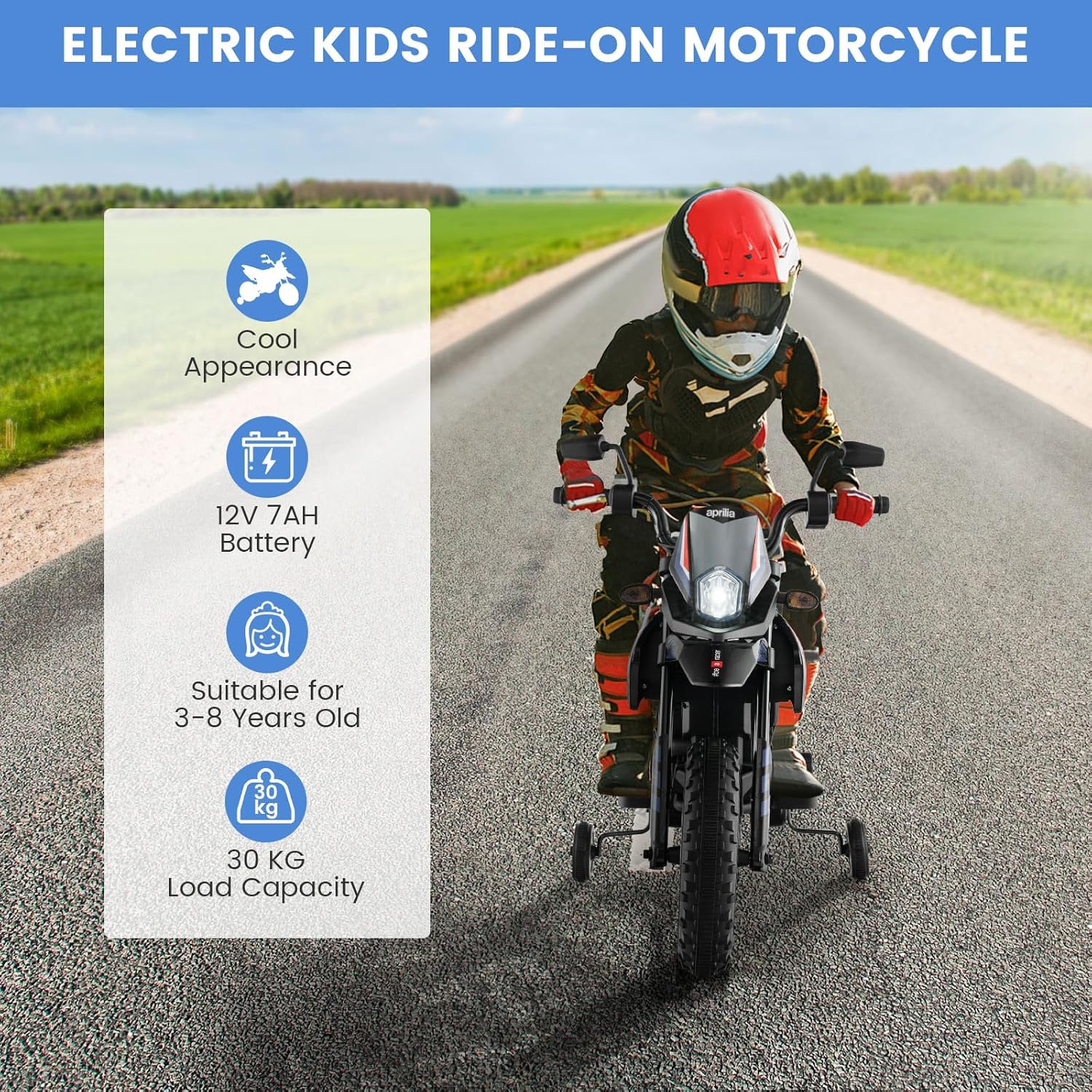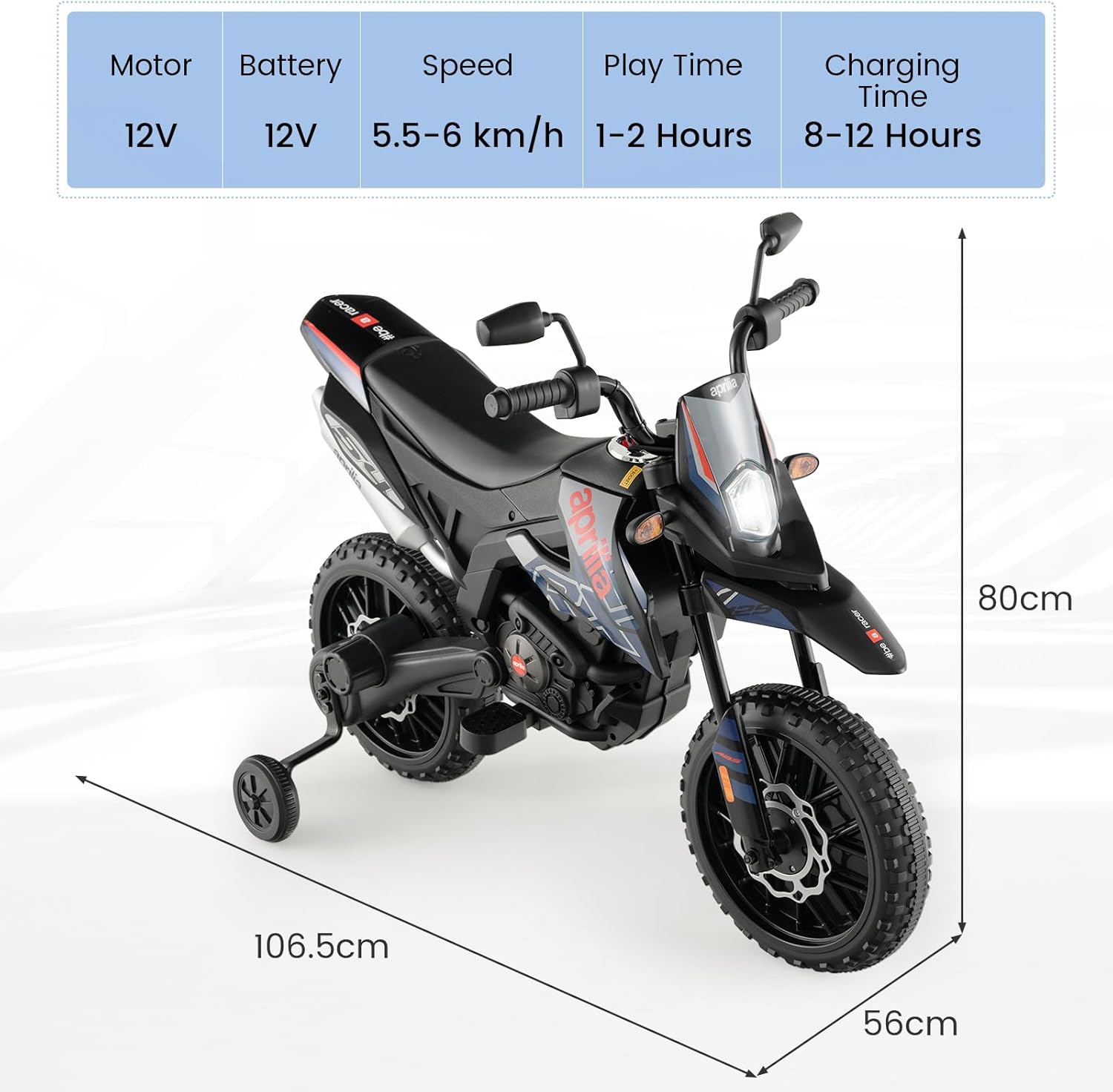 - 🏍️ Licensed Aprilia RX125 Motorcycle: INFANS kids motorcycles come with Licensed Aprilia RX125 motorbike look to provide a real riding experience for your children. Headlights can illuminate the surroundings at night.